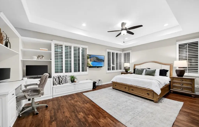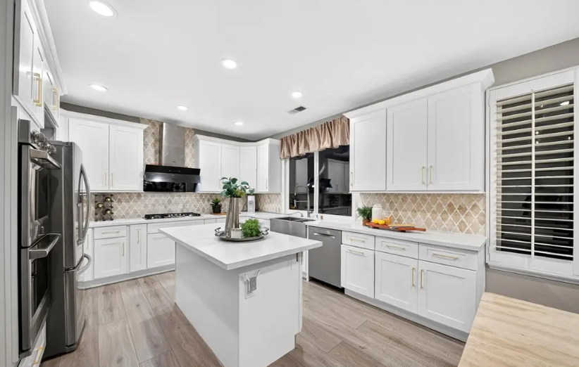 这栋优雅翻新的住宅坐落于奇诺岗名望社区,拥有4房3浴,生活空间达3,227平方尺,占地6,200平方尺,建于1995年,3车库。特色包括高挑天花、精致皇冠造型线条、木地板与百叶窗,呈现经典高雅风格。主厨级厨房配备高端不锈钢电器、白色橱柜与设计师饰面,开放式布局与客餐厅无缝连通。全屋浴室均以高级材料全面升级。宽敞主卧套房提供极致舒适,楼上配有 4 间卧室及大型多功能房,可作家庭影院、游戏室或办公室。温馨家庭房以时尚壁炉为中心,后院拥有覆盖式露台,适合全年户外娱乐。社区环境宁静,临近公园、购物中心与顶级名校,兼具现代奢华与生活便利性。