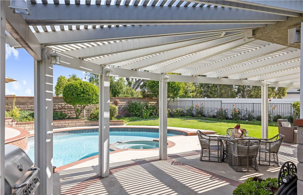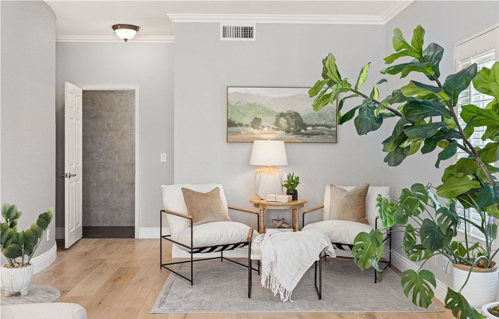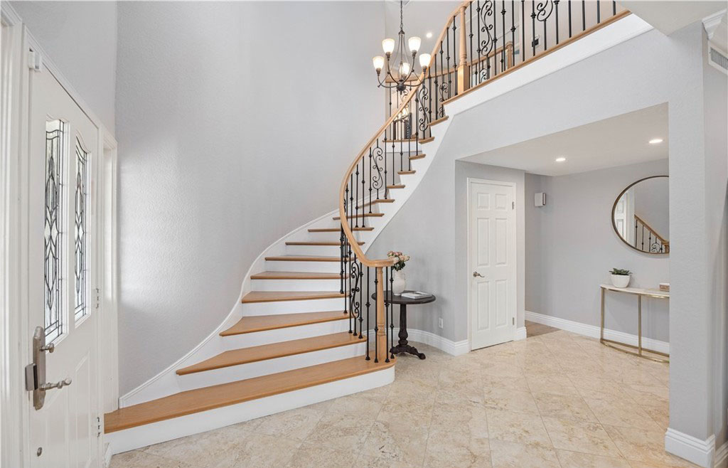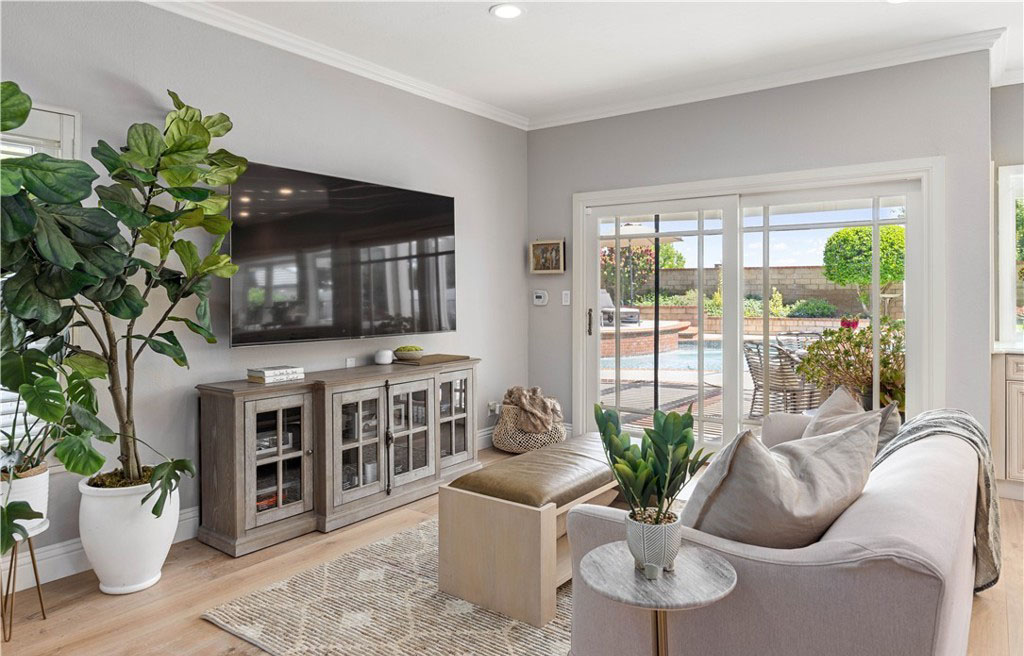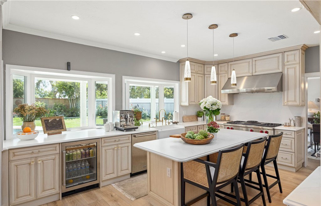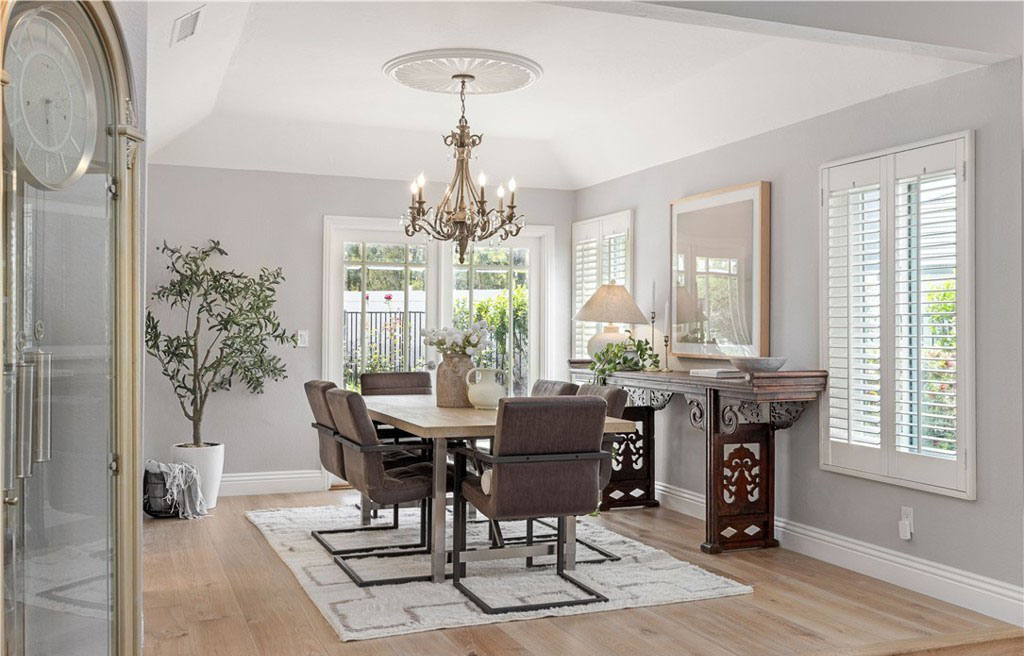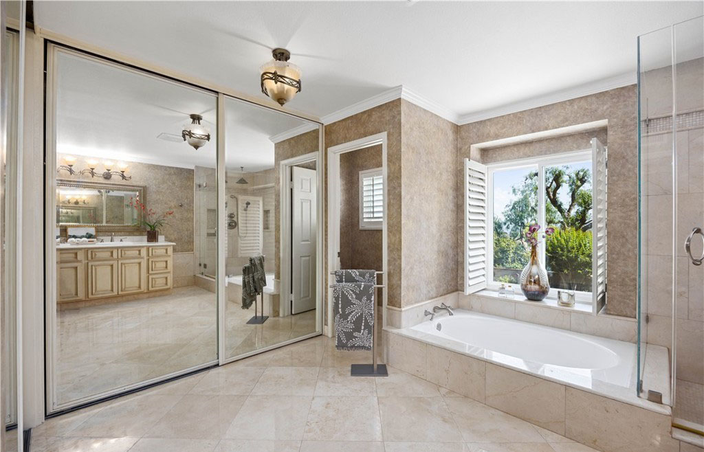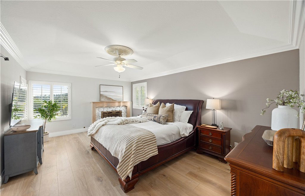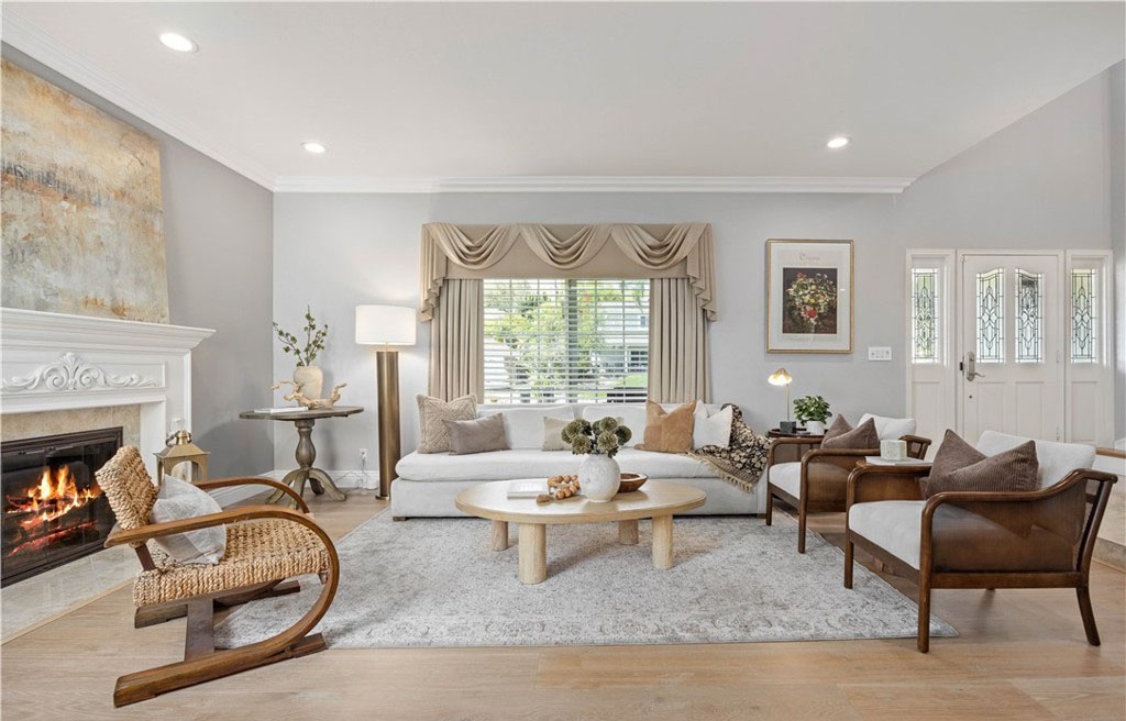 在过去的五年里,该住宅经历了多次高端升级,风格和功能都得到了提升。其中包括全面改建的厨房、Toto 座便器、整体更新的地板、重新设计的楼梯、新的暖气和空调管道、新窗户和百叶窗、软水系统、新泳池泵、铺设的车道和人行道以及复合车库地板。一进门,映入眼帘的是木制弧形楼梯,楼梯上还有锻铁装饰—这为住宅的精致风格奠定了基调。引人注目的天然石材和木质壁炉是阶梯式正式起居室的主色调,而相邻的正式餐厅则为您提供了优雅的娱乐空间。楼上的四间卧室舒适而私密,其中包括豪华的主套房—一个宁静的度假胜地,拥有双开门入口、舒适的石制壁炉、三层天花板和水疗套房,套房内设有下沉式浸泡浴缸、独立的大理石淋浴间、石灰华地板和宽敞的盥洗台。住宅的核心部分是开放式主厨厨房,它与温馨的家庭厅无缝连接。精心设计的厨房兼具时尚性和功能性,展示了奶油色定制橱柜、Silestone 石英台面、大型中岛和高端 Wolf 电器。在自然光的沐浴下,这里还可以欣赏到后院郁郁葱葱的美景。走出去就是私人度假风格的绿洲,有顶棚的露台可供露天用餐和娱乐。后院设有闪闪发光的游泳池和水疗池,周围环绕着成熟的园林景观、郁郁葱葱的绿色植物和多棵果树,营造出宁静的氛围,适合放松或举办活动。该住宅位于中心地带,方便前往高速公路、购物场所、公园以及著名的约巴林达乡村俱乐部和黑金高尔夫俱乐部。周围的学校是 PLYUSD 评级最高的学校之一。