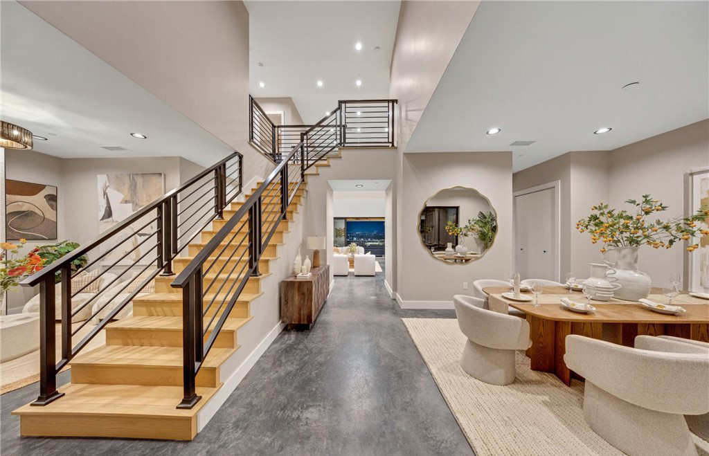 每一扇窗户都定格了美丽的瞬间—闪烁的城市灯光、滑翔而过的老鹰或远处汽车的轻快行驶。即使是平淡无奇的生活,也变得如电影般动人。穿过超大的双开门,步入高耸的 19 英尺门厅,玻璃墙让整个空间充满阳光,将您的视线拉向窗外的美景。宽阔的环绕式露台延伸了居住空间。主楼设有一个套房。楼上还有四间卧室,一间是豪华的主套房,一间是连接浴室,另外两间共用一间设施齐全的浴室,是多人居住、接待客人或远程办公的理想之选。私密的前庭为进入精心设计的室内空间创造了宁静的入口。厨房里有时尚的灰色橱柜、6 炉火炉和工业风格的地板。每间浴室都展示了设计师设计的瓷砖和精致的饰面。主套房设有步入式衣帽间,视野开阔,水疗浴室铺设了大理石瓷砖,并配有金色固定装置。一见倾心!不容错过!