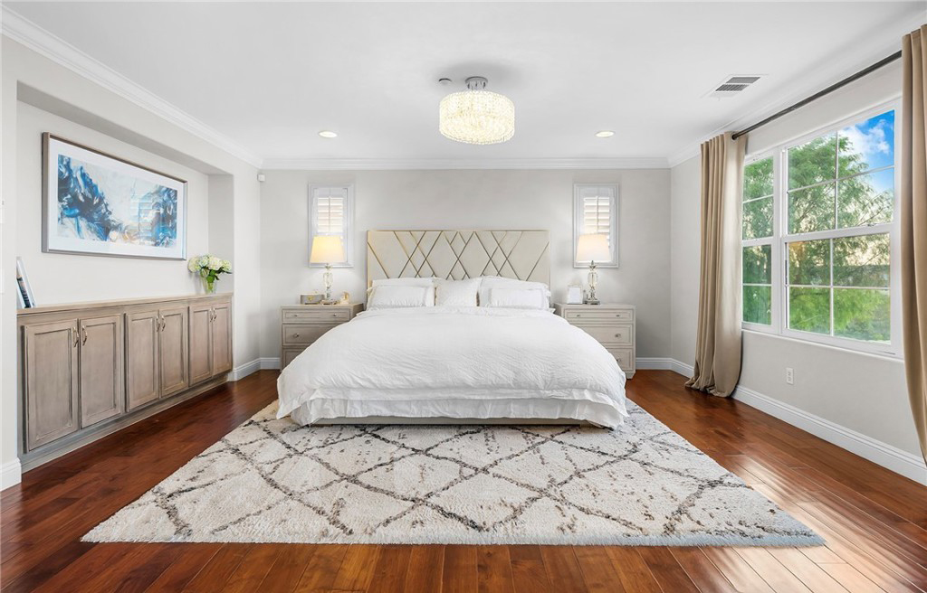 景观!景观!景观!全景雪山与城市灯火交相辉映!极具视觉吸引力的外观。5间卧室,3间浴室(含一楼一卧一卫),另设阁楼空间,带三车位连体车库,生活空间达3,715平方尺,占地6,534平方尺,建于2005年。穿过私家锻铁大门,进入宽敞庭院。明亮开阔的客厅。配有定制水晶吊灯的正式餐厅。家庭娱乐室配壁炉及影音中心。美食厨房配备步入式储藏室、花岗岩台面、中央岛台及通往后院的早餐角,高端不锈钢厨电包括五眼灶台、嵌入式冰箱、双烤箱及洗碗机。楼下卧室与翻新卫浴更添便利。上层设有超大多功能厅,堪称娱乐天堂。主卧配备休憩区及带收纳系统的超大步入式衣帽间。主卫配备按摩浴缸、独立淋浴间(配无框玻璃隔断)及双洗手台。楼上另设三间卧室。其他亮点包括:定制双色内墙漆、客厅/正式餐厅/卧室铺设工程木地板、豪华定制窗帘、种植园式木百叶窗与卷帘、顶角线装饰、水晶吊灯、嵌入式照明、两套中央空调系统、带水槽的楼上洗衣房。棕榈树与鲜花点缀,铝制露台,抬高的休憩区。180度全景视野令人叹为观止,尽览群山与城市灯火。毗邻加州杰出学校——威克曼小学,坐拥奇诺岗优质学区。地处便利位置,邻近购物中心与餐厅,高速公路通达无阻。这处精心升级的房产实为珍宝!