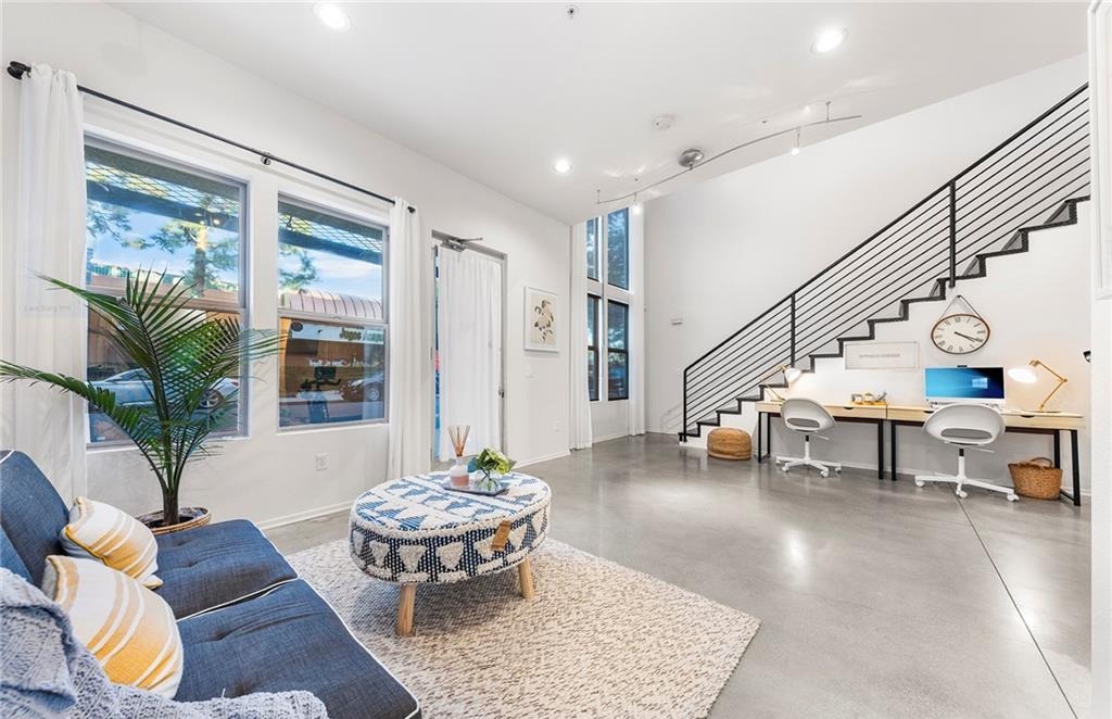 THIS IS THE LOFT YOU HAVE BEEN DREAMING OF!!! The Artist Walk Lofts are ideal for your living/office needs in Historic Downtown Santa Ana. Welcome to this Trendy home packed with High Quality Upgrades within walking distance to the most desirable California Top 10 High School – Orange County School of Arts. Steps through the front door and enjoy all this outstanding home has to offer. Soaring Ceilings in the main floor. Enormous Dual Pane Windows that Offer Lots of Natural Light, Polished Concrete Flooring, Custom roller Blinds, Exposed Duct Work, Designer Industrial-Style Fixtures & Accents, Recessed Lighting, Ceiling Fans, Newer Interior Paint, It Includes a Large Downstairs Studio or Living Room and Oversized Remodeled Bathroom, Plus Direct Access to Very Rare TWO-CAR “Finished” Garage with Storage Spaces. Upstairs You’ll Find Open Concept Living Areas that Includes Living Room, Dining Room, The Remodeled Gourmet Kitchen with Island Boasts Quartz Countertops, Newly Stainless Appliances (Dish Washer, Stove, Microwave), Stainless Sink, and Newly water heater. Upgraded Full Bathroom with Quartz Countertops, newly bathtub and Dual Sinks. Open Bedroom Niches which can be Fully Enclosed. Sliding Glass Door that Opens to a Lovely Balcony. Walking Distance to California TOP 10 High School OCSA -Orange Country School of the Arts. Enjoy Nationally Recognized Restaurants & Museums & More! SCHOOL – WORK – LIVE – PLAY in DTSA!