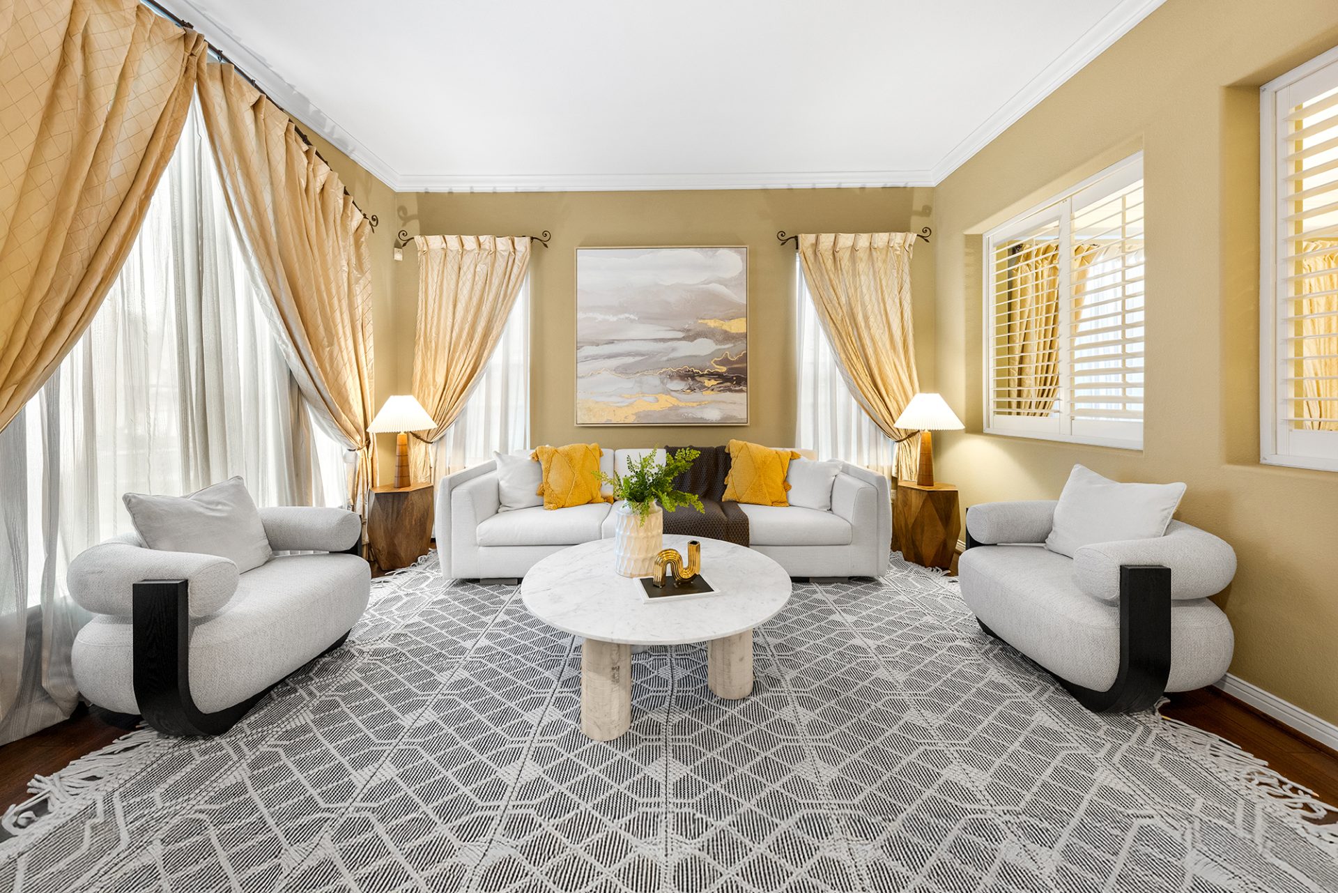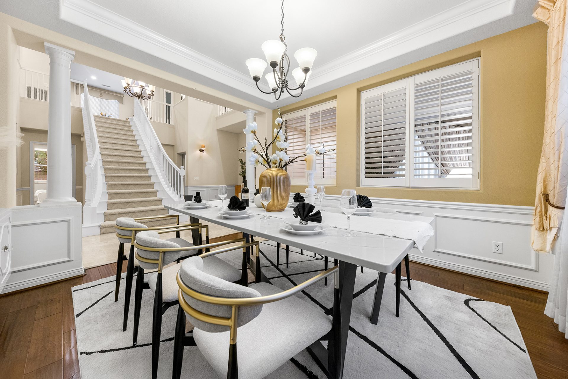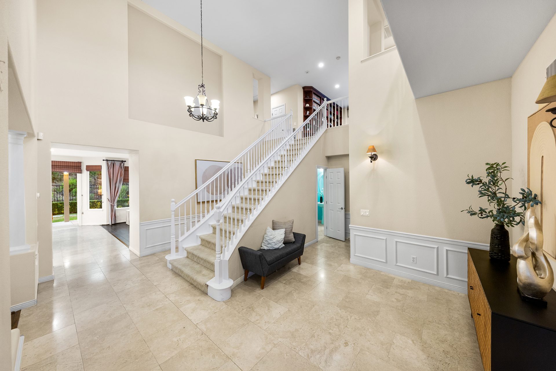近20 英尺的高耸天花板、典雅的墙面装饰、皇冠顶饰造型、新装修的厨师厨房(配有瀑布边石英台面)以及定制的茶间,全 PVC 管道重新铺设、两套全新的 HVAC 系统和双区温度控制,让您尽享极致舒适。