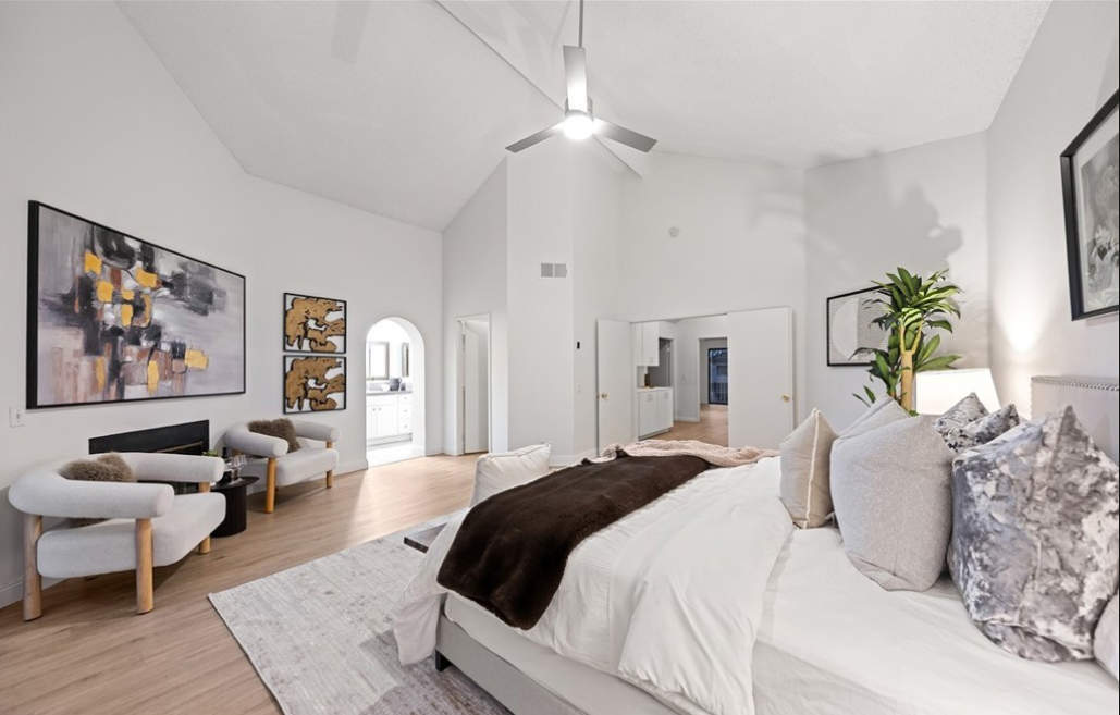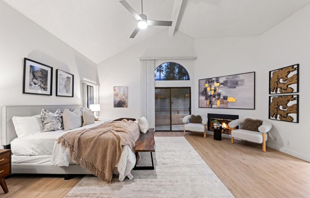 ✨ 宽敞主卧套房自带壁炉与私人阳台,私密惬意