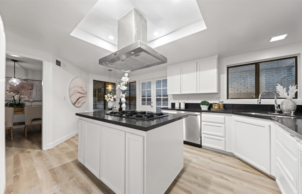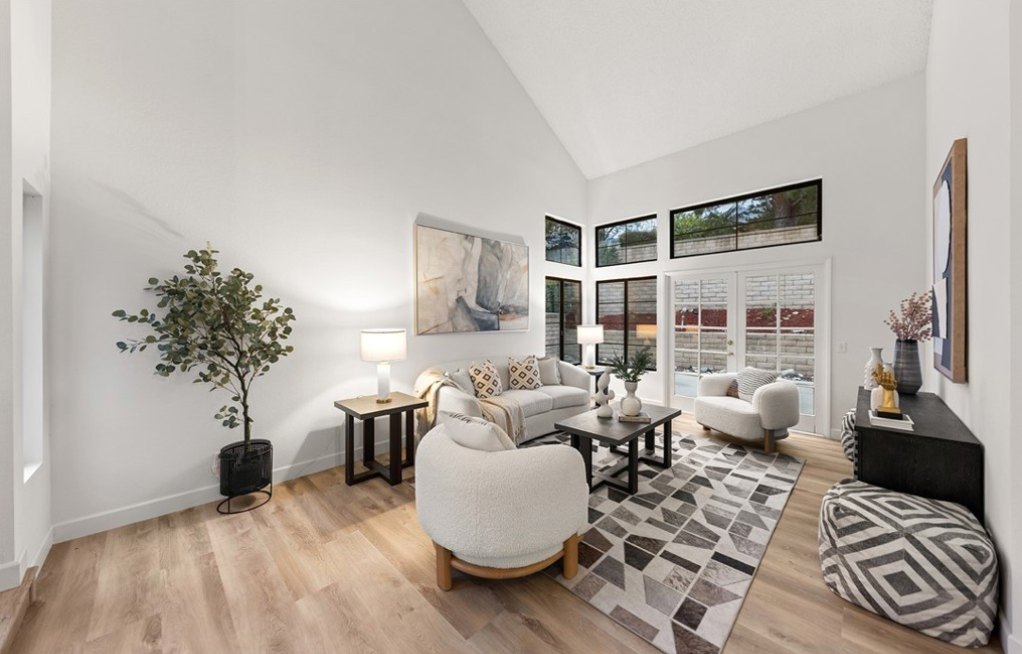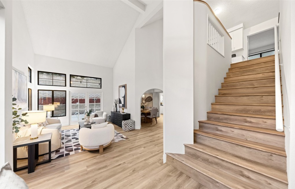 房子朝向是最受欢迎的坐北朝南,步入室内,挑高天花板与多扇超大窗户引入充沛自然光,空间通透明亮。主层设有宽敞客厅与典雅正式餐厅,流畅衔接开放式家庭活动室,温馨壁炉营造舒适氛围。厨房配备花岗岩台面与法式双开门,通往私密且低维护的节水型后院,完美诠释加州室内外融合的生活方式。
